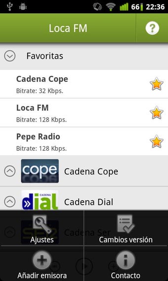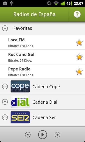 Las emisoras en Radios de España vienen agrupadas por nacionales y autonómicas, e incluye una práctica opción para guardar tus favoritas y tenerlas siempre a mano.